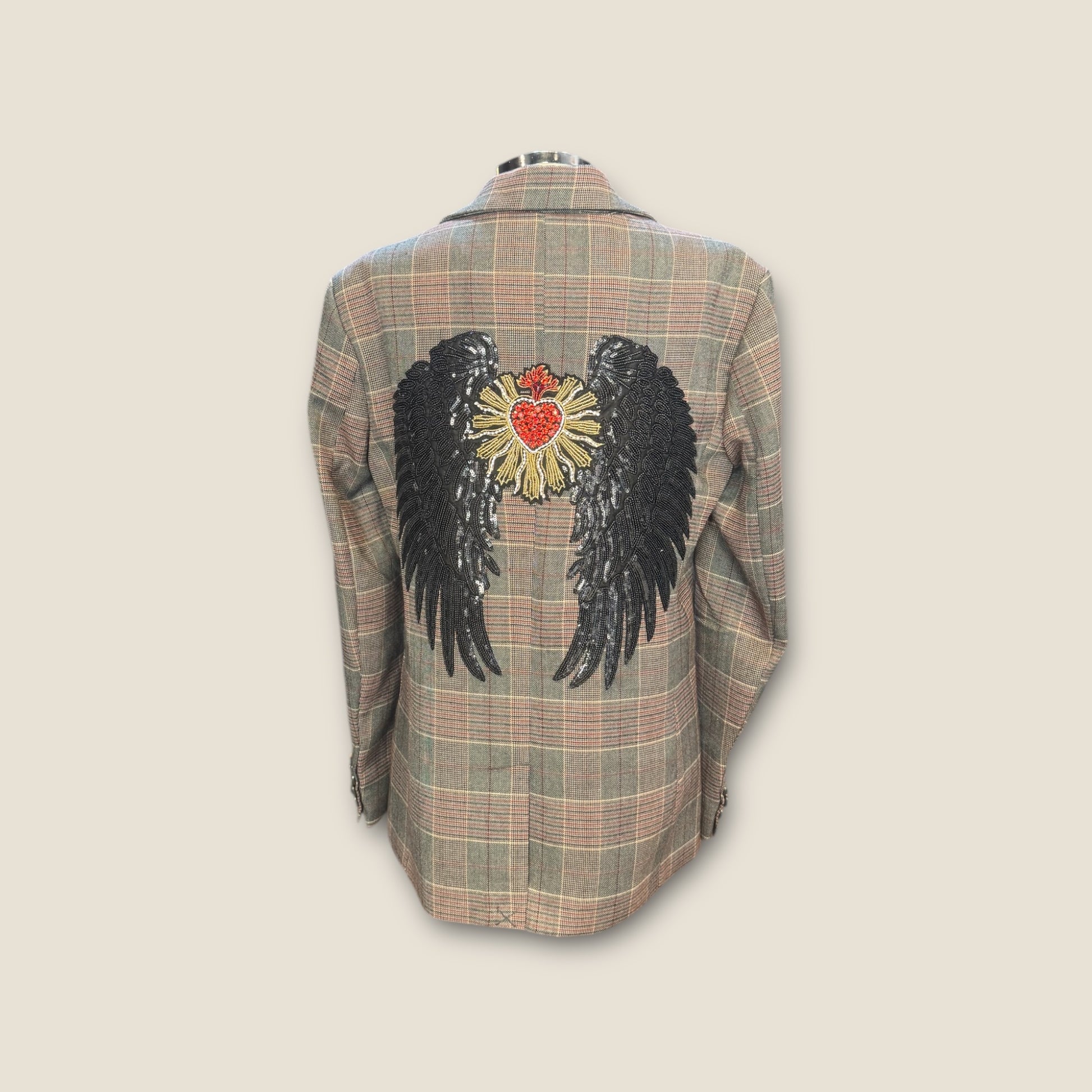 Customizada artesanalmente con alas negras de lentejuelas en espalda y corazón de pedreria