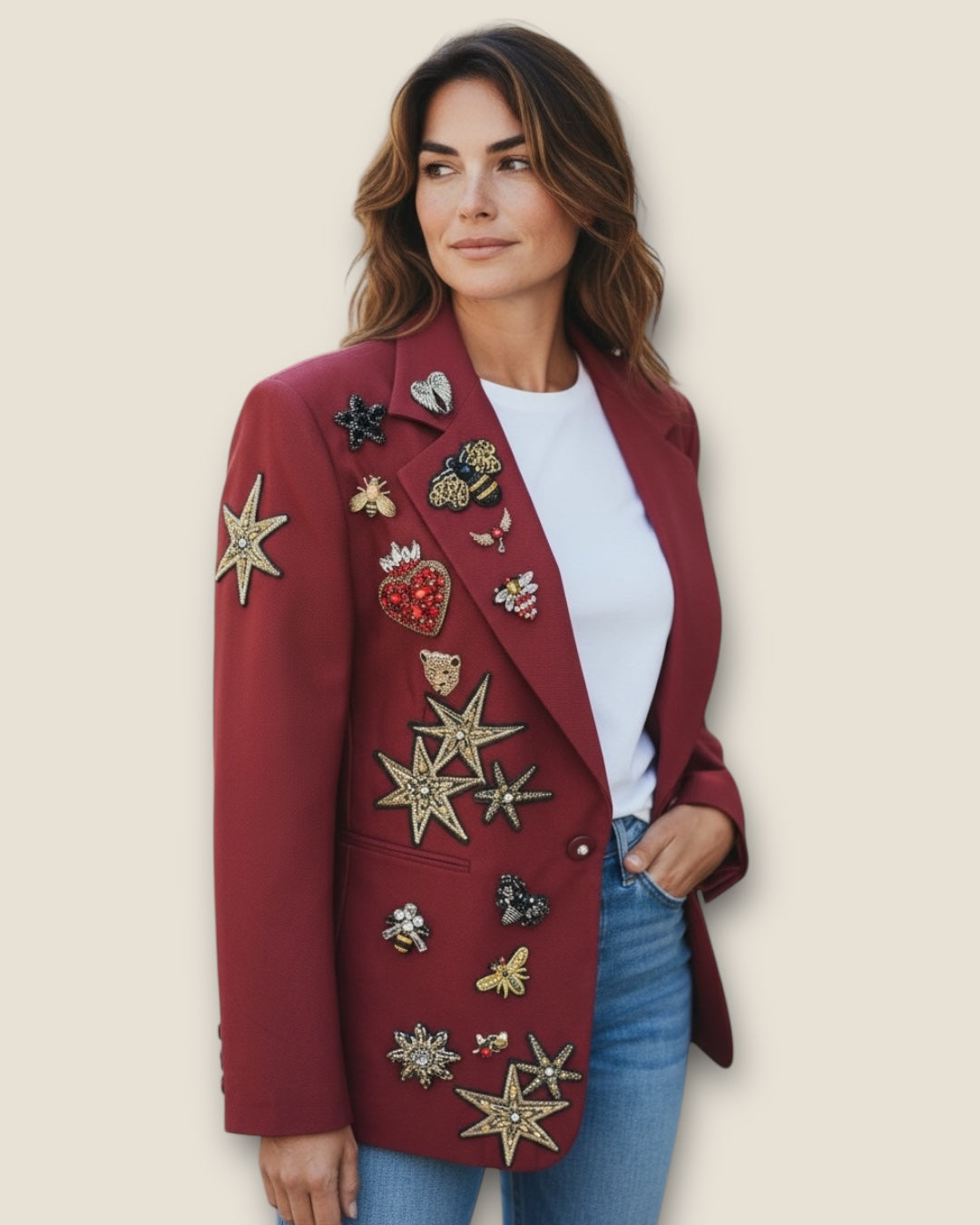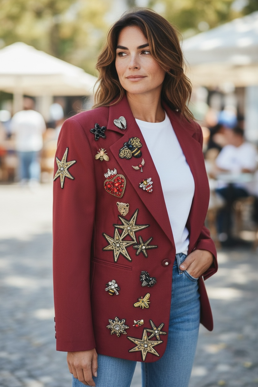 Customizada artesanalmente con multitud de aplicaciones y parches de pedreria