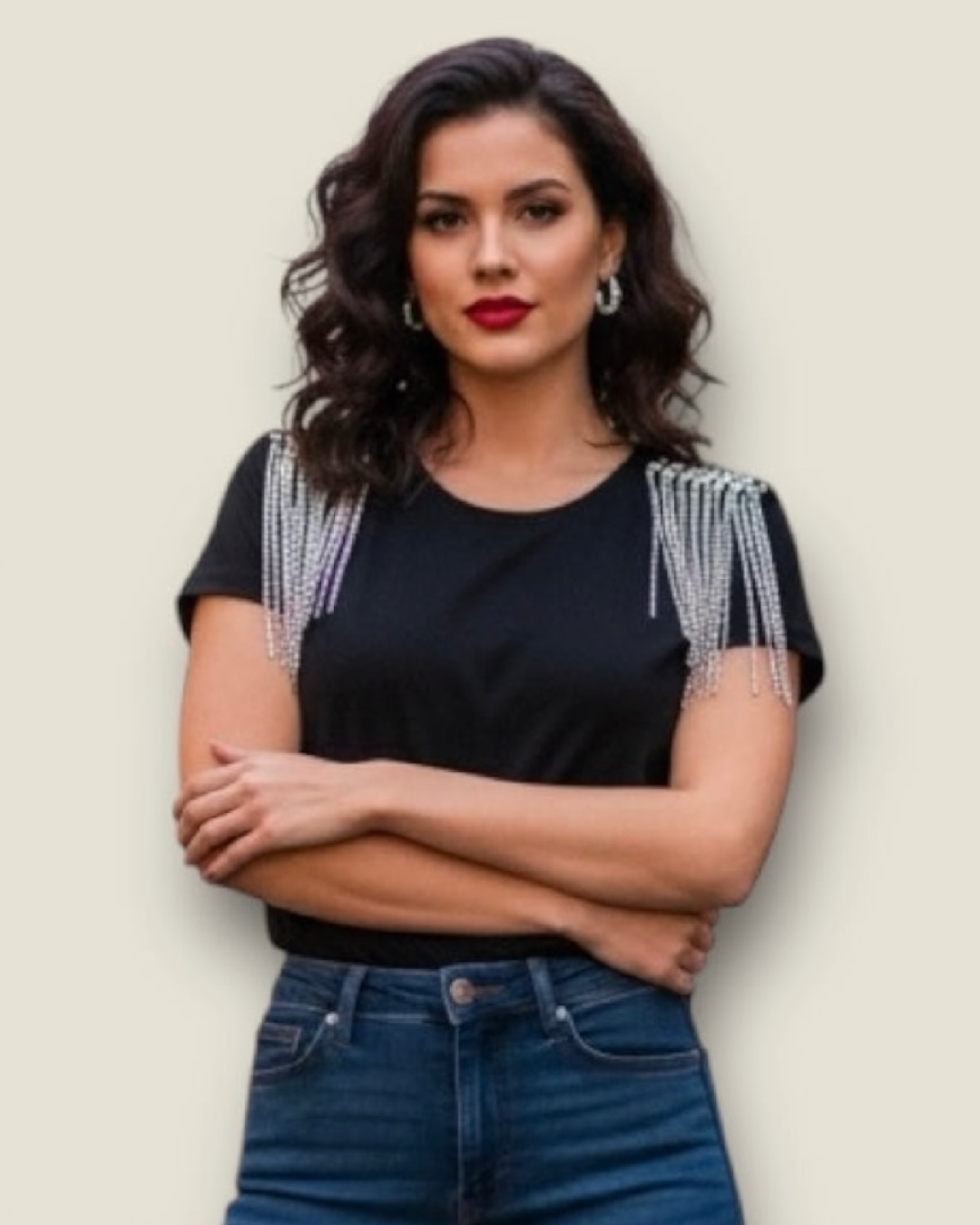 Camiseta hombreras pedrería